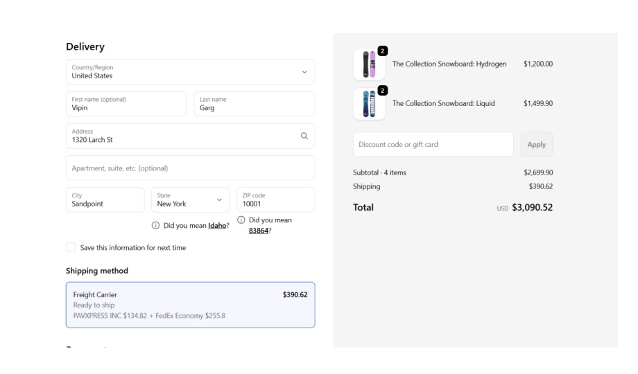EchoTrak integration for real-time shipping rates based on shipping address and cart products.
